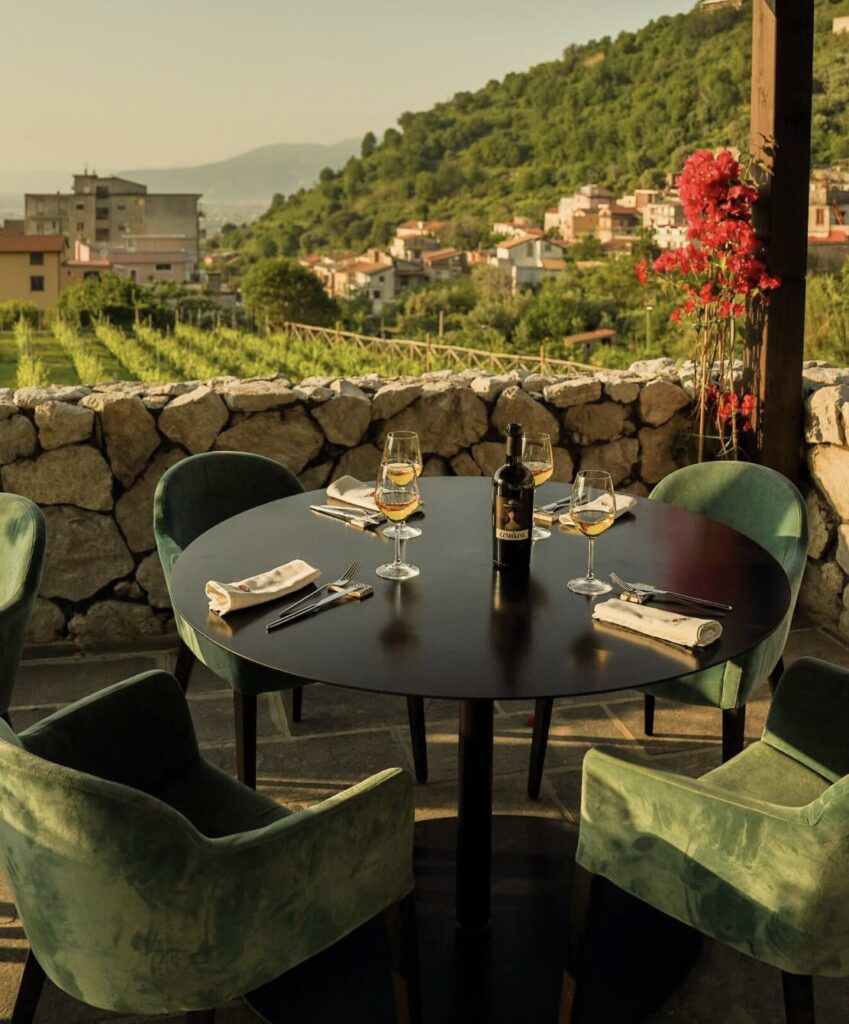 La terrazza diventa il luogo ideale per pranzi informali, aperitivi e cene rilassate, dove il vino accompagna la conversazione e il paesaggio diventa parte dell’esperienza.